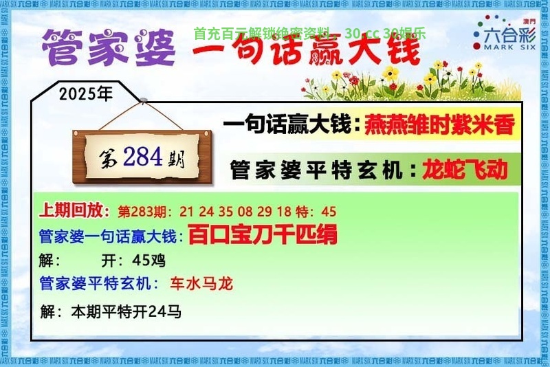 284期一句话赢大钱:【燕燕雏时紫米香】