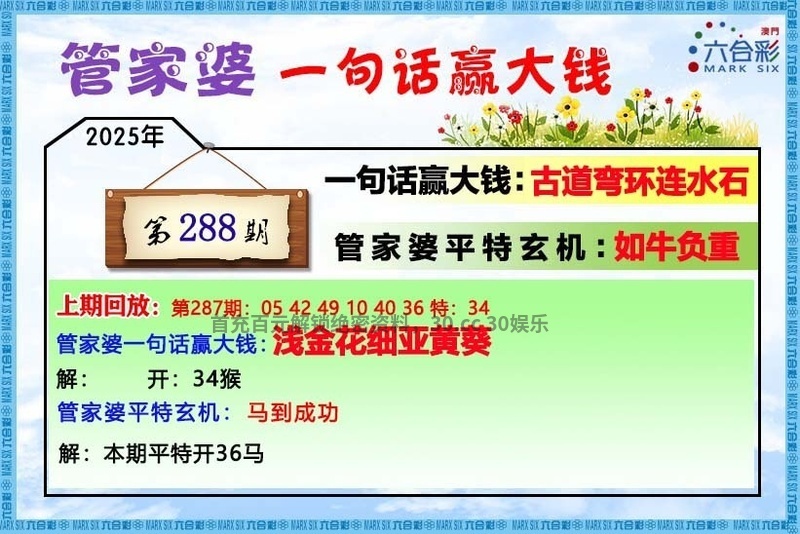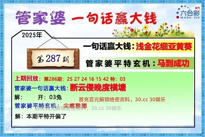 289期:白姐特段/简单发财诗/马会欲钱料/七娘一句中/开藏特图料